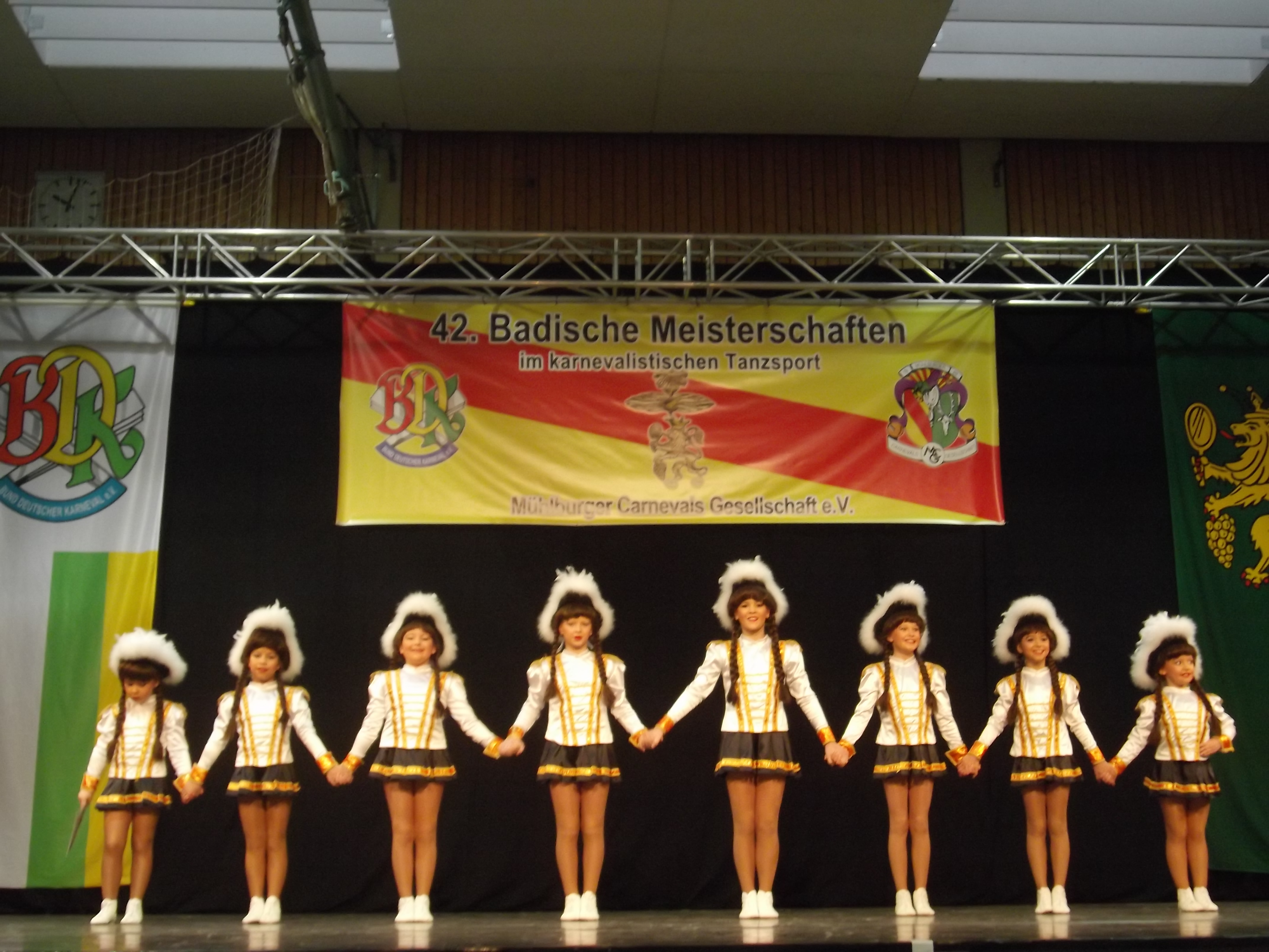 Selbstverständlich war die GroKaGe auch bei den Badischen Meisterschaften vertreten. Diese fanden am 10.01.15 in Karlsruhe statt. Unsere Turmberggarde belegte bei den Junioren einen sehr guten 8. Platz. Unsere Mariechen Julia, Alexa und Michelle reihten sich im Mittelfeld ein. Denise tanzte sich auf einen hervorragenden 4. Platz und ist somit für die Süddeutschen Meisterschaften qualifiziert. Herzlichen Glückwunsch!!!