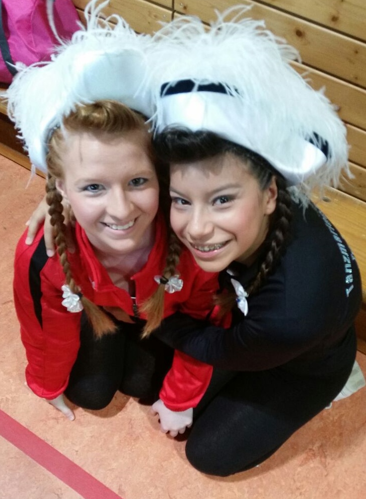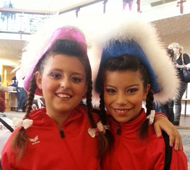 Am Wochenende vom 09.-10.11.13 stand für die GroKaGe das Turnier in Leinfelden auf dem Programm. Nachdem sich unsere Jugendgarde Hexenstäffele am Samstag einen 11. Platz ertanzte reihte sich unser Jugend-Tanzmariechen Dana auf einem guten 16. Platz ein. Bei den Mariechen waren insgesamt immerhin fast 40 Mädels am Start. Unser zweites Jugendmariechen Julia musste ihren Tanz leider abbrechen. Bei der Juniorenwertung am Sonntag erreichte unser Tanzmariechen Michelle den 38. Platz. Zusammenfassend können wir somit von einem durchwachsenen Wochenende sprechen. Am 30.11.13 geht es bereits weiter. Dann steht das Turnier in Grötzingen auf dem Programm. Schon jetzt drücken wir hierfür alle Daumen! Das Bild zeigt unsere Mariechen Dana (links) und Julia kurz vor Turnierbeginn.