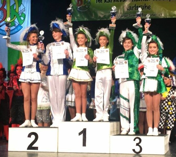 Denise und Vincent haben es geschafft. Bei den Badischen Meisterschaften am 11.01.14 in Waghäusel ertanzte sich unser Junioren-Tanzpaar den Titel. Ab sofort dürfen die Beiden, die von Jasmin Frasch trainiert werden, sich Badische Meister nennen. Herzlichen Glückwunsch an alle Beteiligten!!! Selbstverständlich waren auch unsere Garden und Mariechen unter der Anwesenheit eines großen GroKaGe-Fanclubs am Start und konnten durchweg super Leistungen auf die Bühne zaubern. Bei der Jugend erreichten unsere Hexenstäffele den 7. Platz. Die Mariechen Dana (Platz 12) und Julia (Platz 13) wussten ebenfalls zu gefallen. Im Juniorenbereich konnte sich Denise bei den Mariechen sogar auf den 8. Platz schieben. Hier reihte sich Alexa auf dem 13. und Michelle auf dem 16. Platz ein. Unsere Turmberggarde schloss die Meisterschaften mit dem 12. Platz ab. Macht alle weiter so. Wir sind stolz auf Euch.