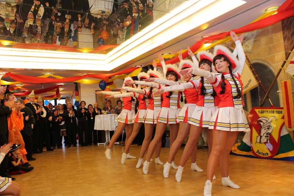 Am 10.01.15 fand der Ordensempfang der GroKaGe statt. Wie gewohnt wurde dieser gemeinsam mit dem Elferrat der Lyra im Casino der Volksbank Durlach ausgerichtet. Bei diesem Ereignis werden Vertreter befreundeter Vereine und Größen aus der Karlsruher Politik mit unserem Jahresorden ausgestattet. Selbstverständlich zeigten auch einige unserer Tanzgruppen ihr Können. Den OKDF-Orden für besondere Verdienste rund um die Durlacher Fastnacht erhielt in diesem Jahr unsere Gardeministerin Bettina Kretz.