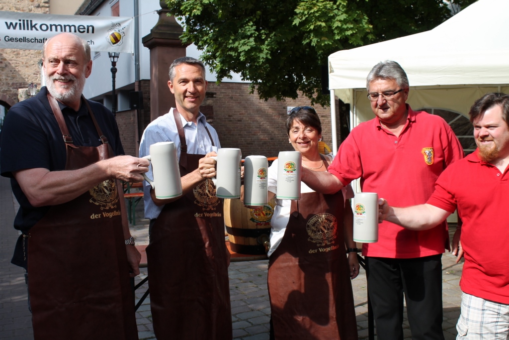 Auch das 38. Baslertorfest der GroKaGe war eine gelungene Veranstaltung. Am 14. und 15.06.14 freute sich das „GroKaGe-Festteam“ über zahlreiche Besucher, die das kulinarische Angebot reichlich in Anspruch nahmen. Das Fest hatte dieses Jahr zudem einen sozialen Hintergrund. Der Verkaufserlös von 100 Liter Vogelbräu, die von Rudi Vogel gespendet wurden, kommen der Hanne-Landgraf–Stiftung der AWO Karlsruhe zugute. Die Hanne-Landgraf-Stiftung versteht sich als soziale Lobby gegen Kinderarmut in Karlsruhe. Selbstverständlich hat die GroKaGe hier gerne geholfen. Das Bild zeigt von links nach rechts Rudi Vogel, Bürgermeister Dr. Martin Lenz, Clarissa Simon (Prokuristin der AWO Karlsruhe), GroKaGe-Präsident Helmut Ziegler sowie GroKaGe-Kanzler Christian Müller.