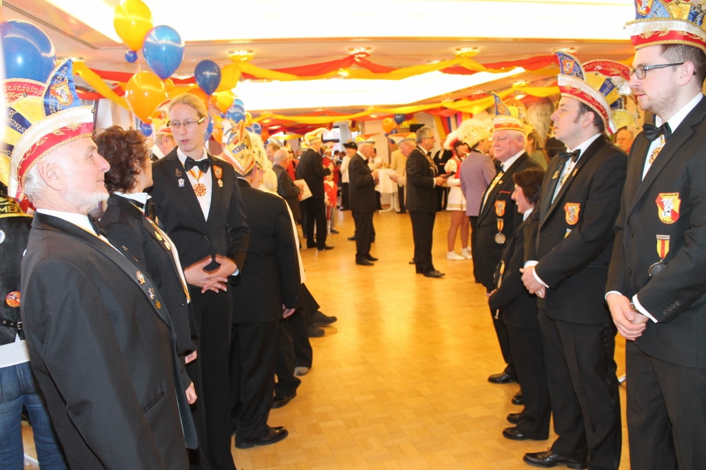 Am 21.11.15 fand der interne Ordensabend der GroKaGe statt. Die Karlsburg war prall gefüllt als unser Vizepräsident, Hanspeter Eder gemeinsam mit allen Garden, Tanzmariechen und Elferräten um 19.31 Uhr in den Saal einmarschierte. Hanspeter Eder führte durch das Programm und vertrat an diesem Abend unseren urlaubsbedingt nicht anwesenden Präsidenten, Helmut Ziegler. Hierbei wurde er zwischenzeitlich von unserem Ehrenpräsidenten, Joachim Großmann unterstützt. Alle Tanzformationen sowie unsere beiden Tanzmariechen führten ihre neuen Tänze vor und wurden mit rauschendem Beifall bedacht. Zudem erhielten alle Mitglieder den Jahresorden der GroKaGe, den dieses Jahr das Bäderbrünnele ziert. Außerdem gab es, wie beim Ordensabend üblich jede Menge Ehrungen und Ernennungen. Besonders hervorzuheben ist hierbei die Verleihung des BDK-Ordens in Gold mit Brilliant an Manfred Vetter für die 50jährige Mitgliedschaft in unserer GroKaGe. Manfred Vetter war in den 80er Jahren Präsident unserer Gesellschaft. Den BDK-Orden in Gold bzw. Silber erhielten Monika Müller für 40 Jahre bzw. Ute Eder für 30 Jahre Mitgliedschaft. Wegen besonderen Verdiensten für unsere Gesellschaft wurde unsere Schatzmeisterin, Heike Hunn zur Ehrenrätin ernannt. Thorsten Küchel wurde das goldene Lenkrad überreicht. Ein neues Mitglied gab es sowohl für den Elferrat (Sabine Fiala) als auch für den Senat (Roland Laue). Zudem kann sich unser Kellermeister, Bernd Hund von nun ab Ehrenelfer nennen. Zusammenfassend kann man von einem sehr geglückten Abend in einem tollen Ambiente sprechen.