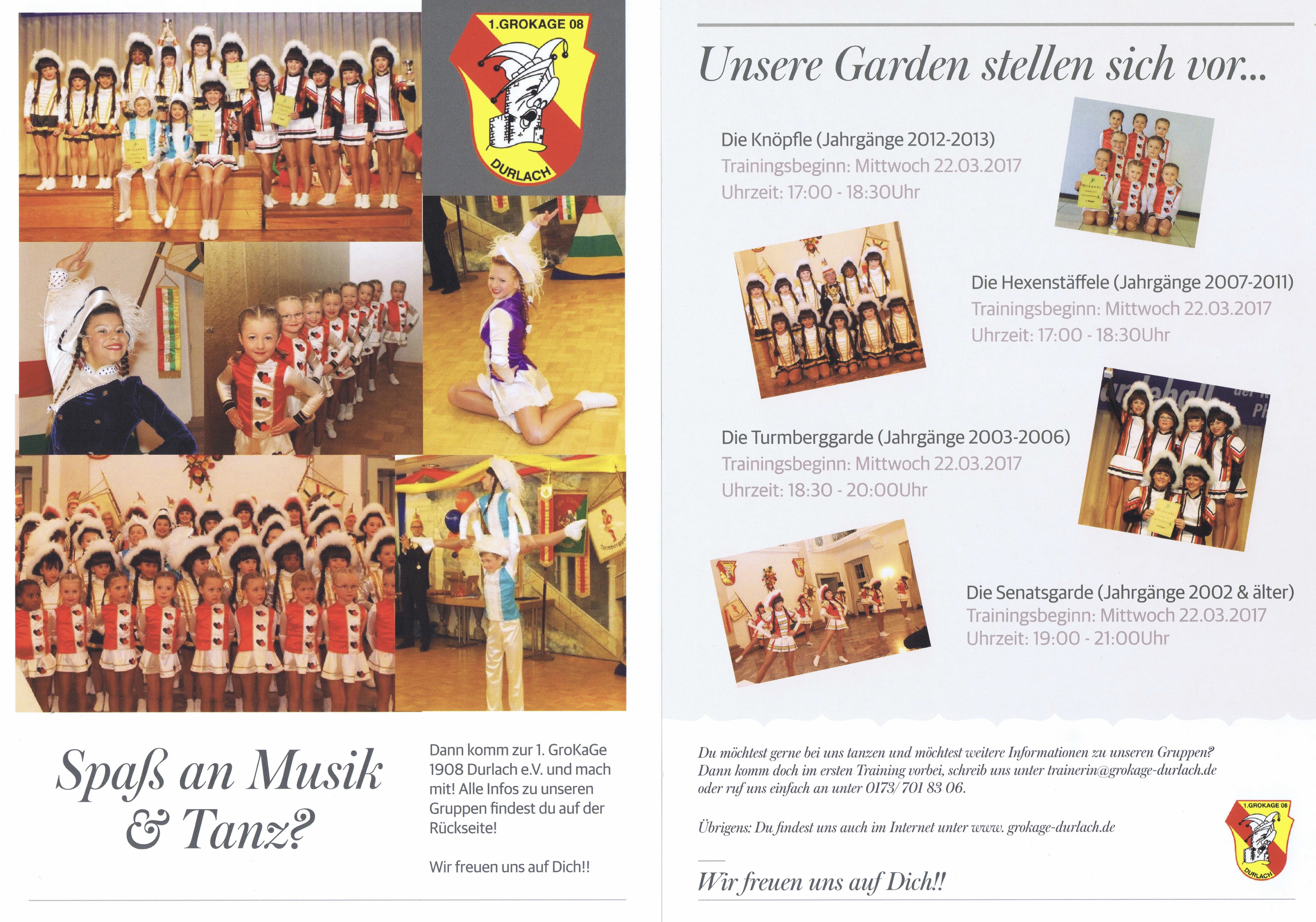 Die Kampagne steht schon wieder vor der Tür. Aus diesem Grunde nutzten die Tanzformationen der GroKaGe den zurückliegenden Samstag als zusätzlichen Trainingstag. Alle Garden, beginnend bei unseren Knöpflen über unsere Hexenstäffele und Turmberggarde bis hin zur Senatsgarde, verfeinerten ihre Tänze. Die ersten Turniere bzw. Auftritte stehen in Kürze an.